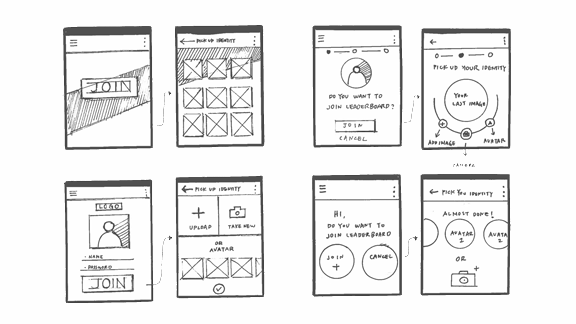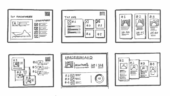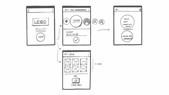I explored several different directions before I chose one to flesh out in more detail. They include layout options for the main leaderboard view, and also different ways to select identity for the phone app.