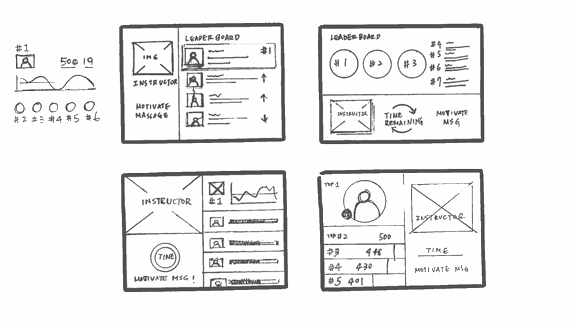 I looked online for reference to similar experiences. I could not find established examples for classroom-based big-screen experience. However, there are many examples of virtual class experiences as this is gaining popularity. There are two types of popular existing examples, one is the screen is part of the actual exercise hardware (Peloton is most prominent example), and another is where user uses their smartphone to join and participate in virtual classes (example is CycleCast). I also looked at examples of existing leaderboards design as they often feature infographics.
